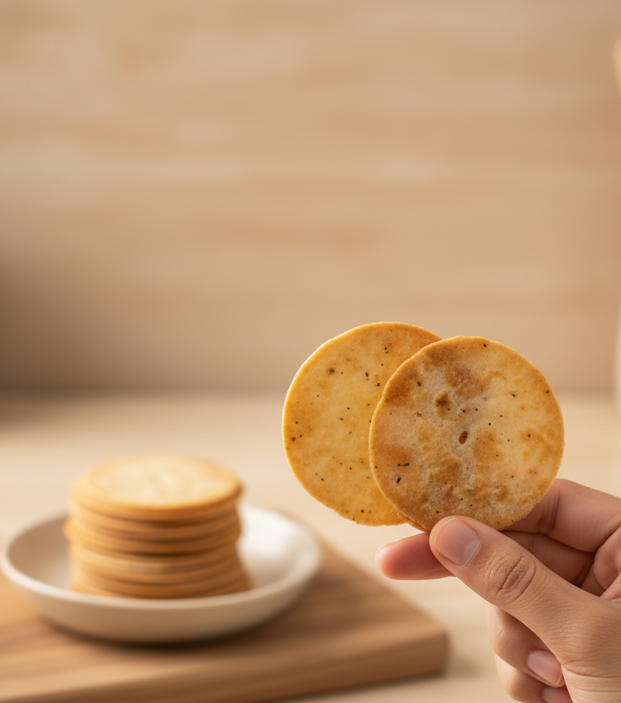 Inspired by the rich flavours of Indian tandoors, our Tandoori Coin Khakhra infuses the aromas of smoky masalas into crisp, hand-roasted khakhras. A celebration of Gujarati craftsmanship with a pan-Indian flavour punch - spicy, earthy, and irresistibly crunchy.